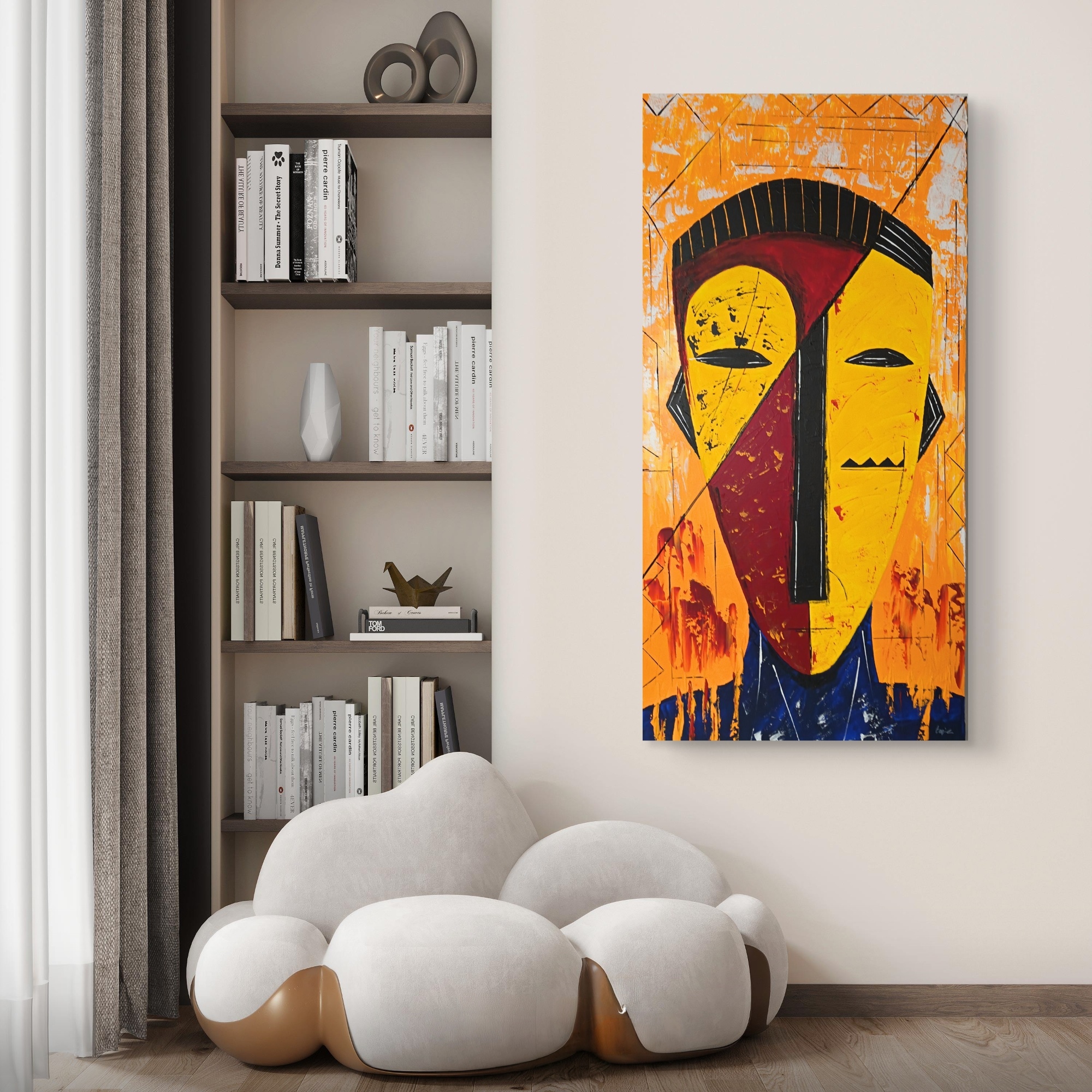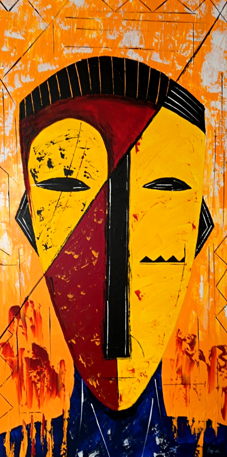 Les couleurs vives dessinent une identité fragmentée, traversée de tensions et de recompositions.